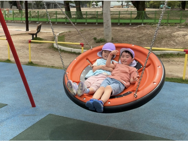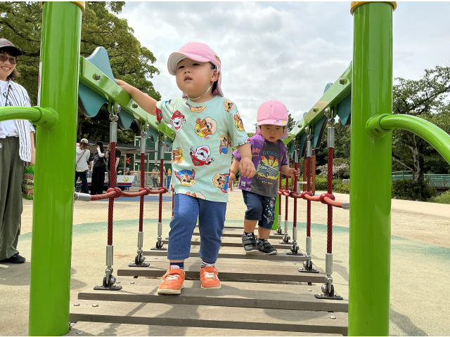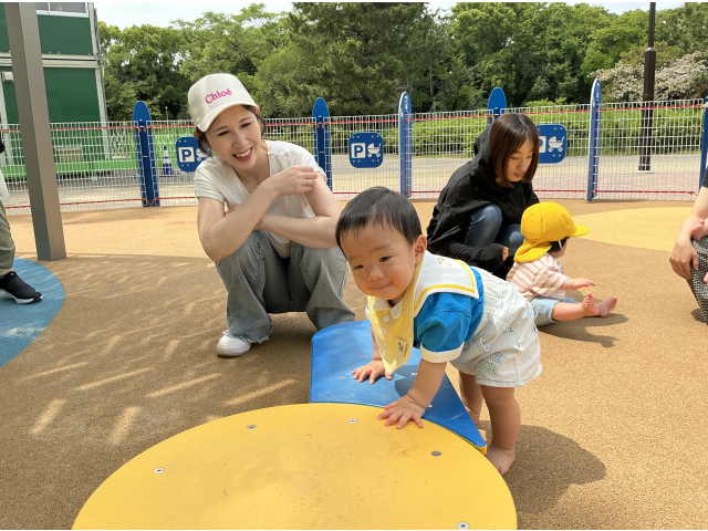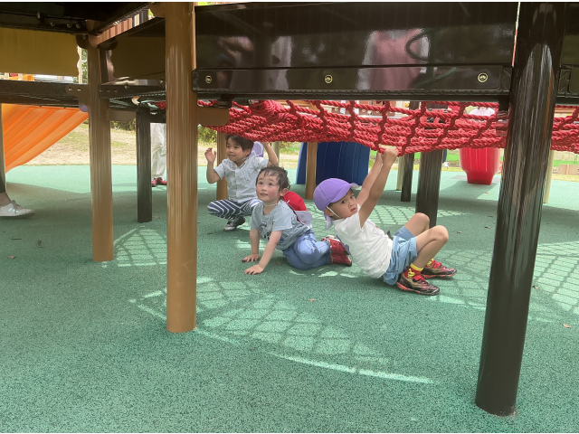 幼児さんは大きな遊具に登ってみたり、鬼ごっこをしたりと体を動かして遊びました。乳児さんも階段やはしご等を登ってみようと挑戦する姿がありましたよ♪