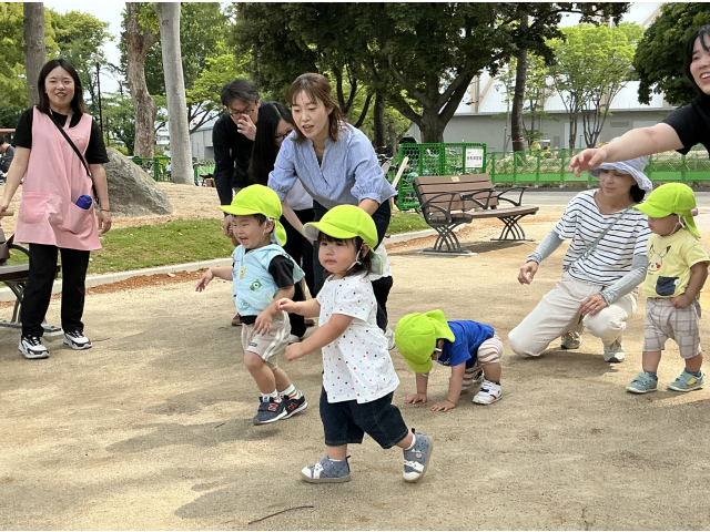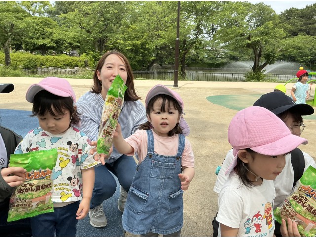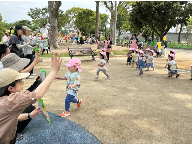 名城公園へ行き全員で親子遠足を行いました♪当日は天気も良く日差しもあり暑かったのですが、元気いっぱいの子ども達!クラスごとにゲームをしてお菓子をもらいました。