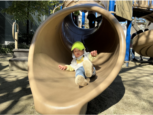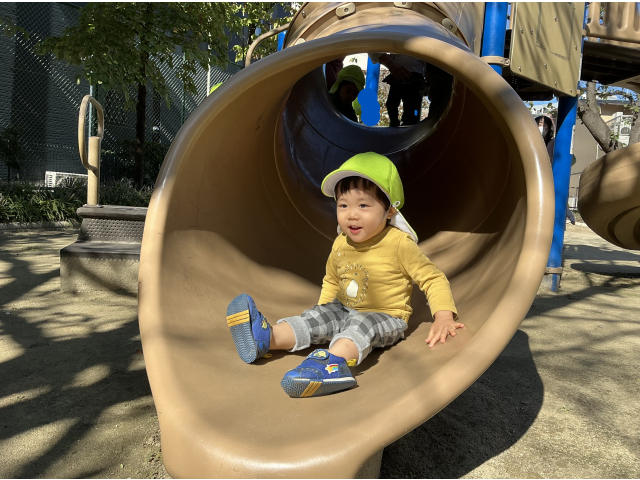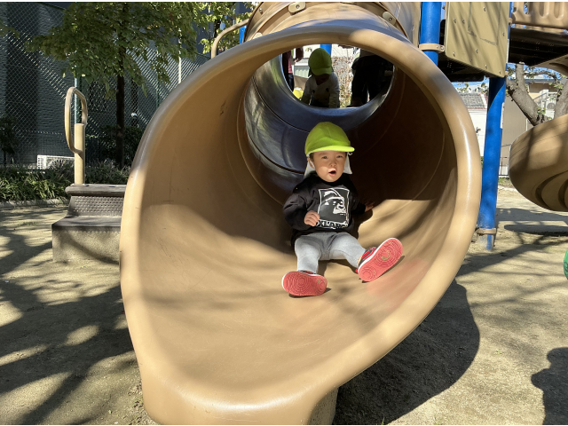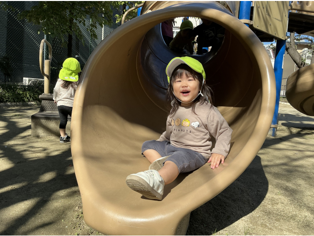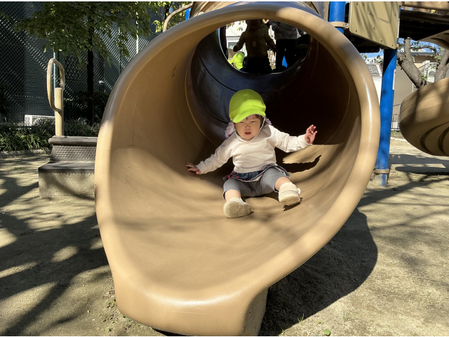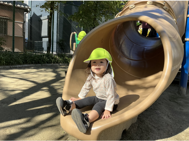 大人気な滑り台!登っては滑ってと何度も楽しんでいました♬
