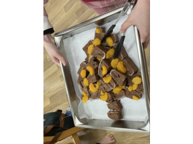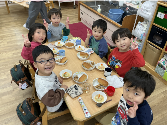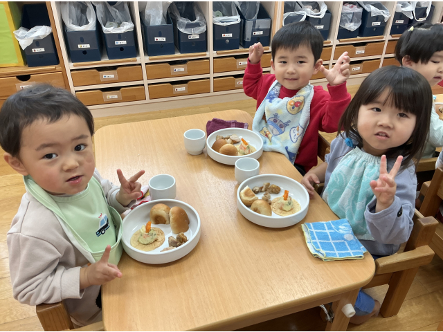 “ツリーの形してる!”“にんじんのお星さまだ!”と嬉しそうに食べる子どもたちです。