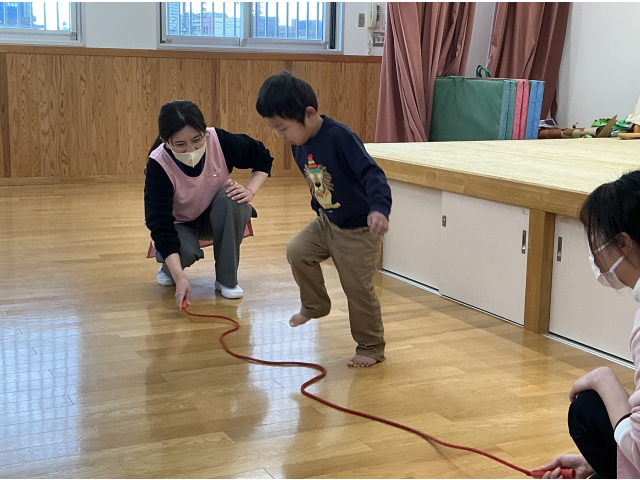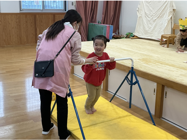 誕生児さんが得意なことを披露してくれます。みんなにみてもらうことで誇らしげな様子です。
