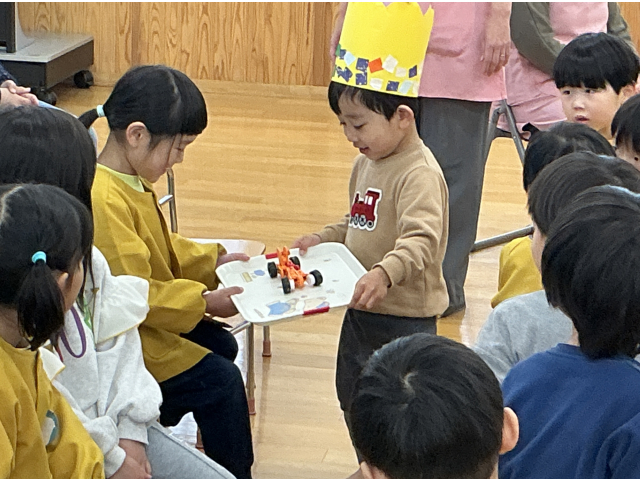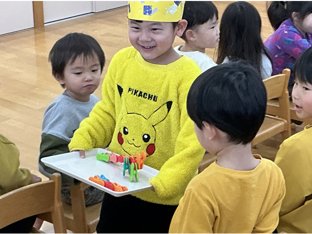 面白いお顔でみんな大笑い。誕生会をおわることができました。