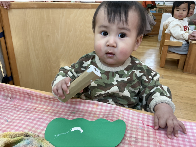 絵の具をポンポン不思議そうにしながらも楽しんでいました~♪