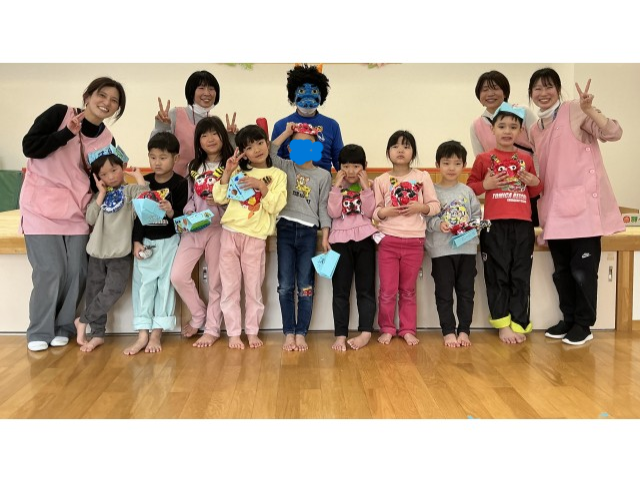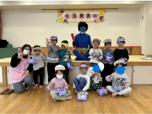 みんなのおかげで体の中にある悪いものがなくなり、青鬼さんとも仲直りすることができました!その記念に各クラスお写真も撮りました。ぽろぽろと涙が出ていた子も最後はしっかりと「ありがとうございました」と感謝の挨拶もし、お別れすることができました。