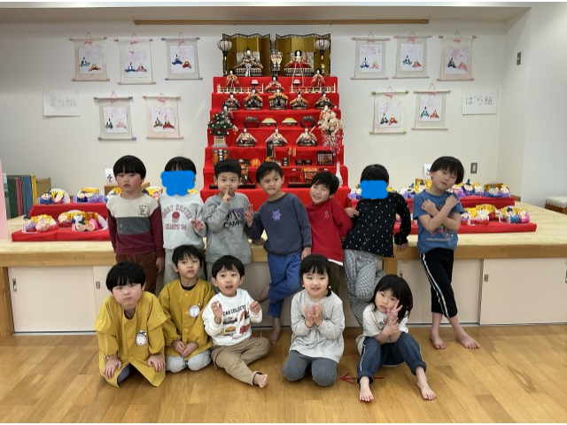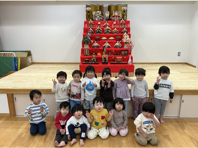 ひな人形の説明では、これはなに~?と聞かれると、“おひなさま~!”“さんにんかんじょ~!”と答える子もいました!“お家におひなさま飾ったよ~”と言う子も!