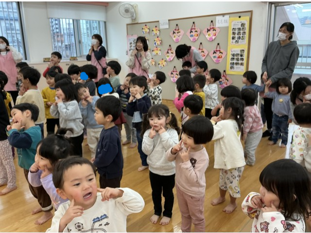 はじめは、みんなで「うれしいひなまつり」の歌って踊りました!