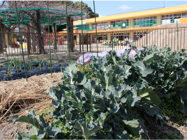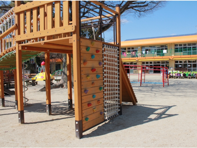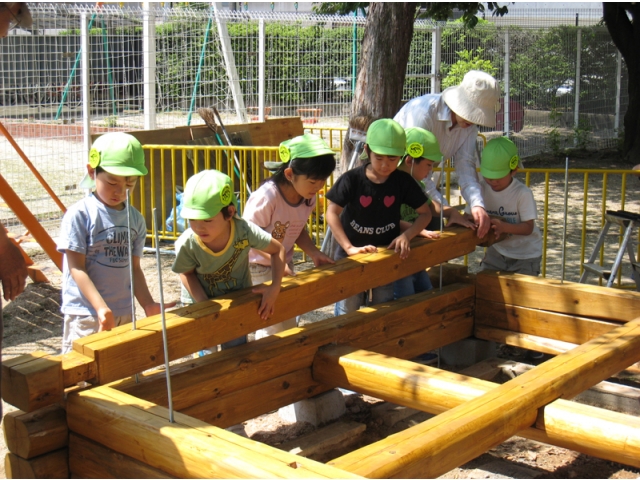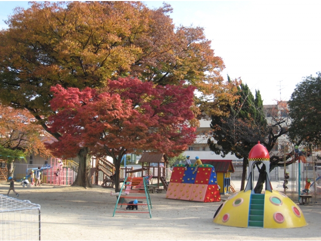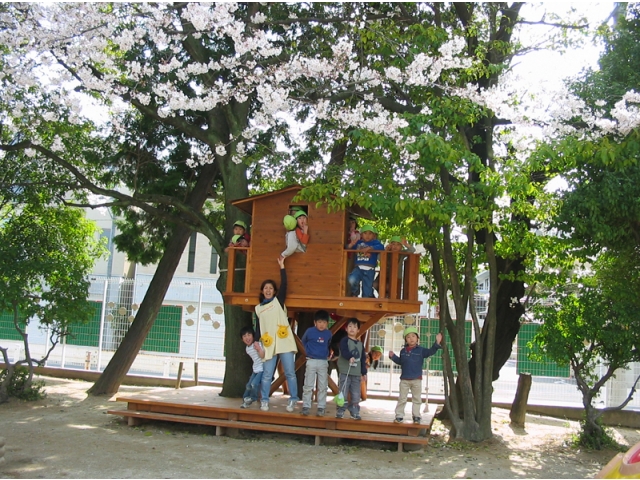春の入園・進級の時期には、柔らかな若草色の新芽を出して子どもたちの成長を祝い、夏の暑いときには園庭いっぱいに日陰を作って、太陽の強い光線から子どもを守りながら、蝉とりにいそしむ姿を暖かく見守っています。秋には紅葉した葉を落として子どもの落ち葉遊びの材料となり、冬になると枝の間から暖かい太陽の日差しを子どもたちに降り注いでくれます。