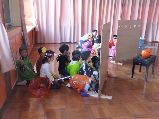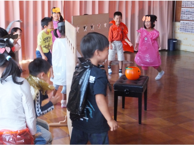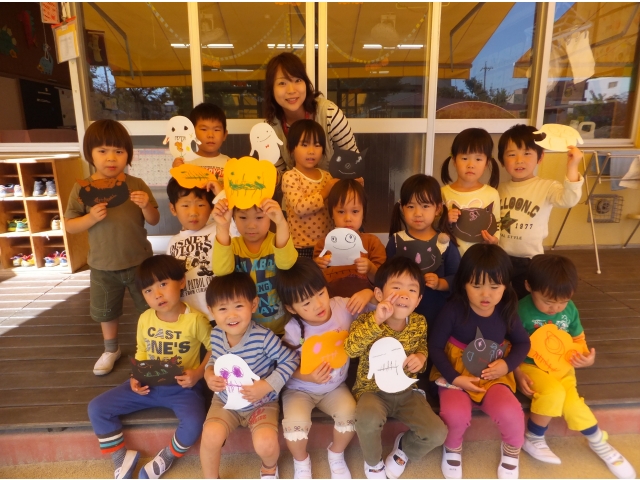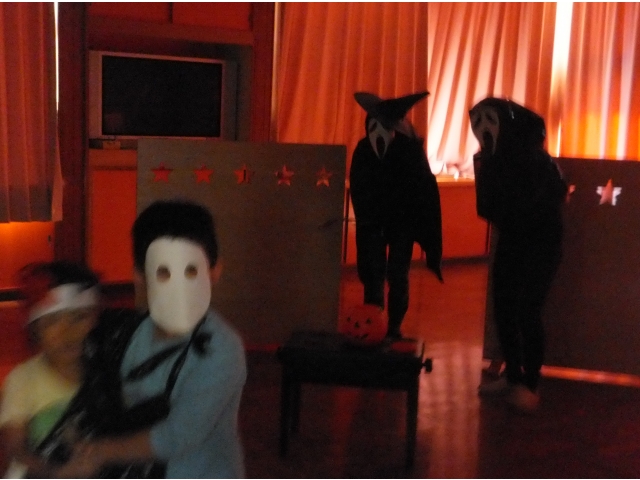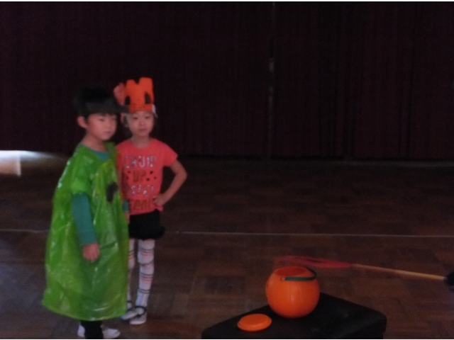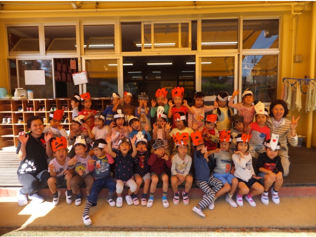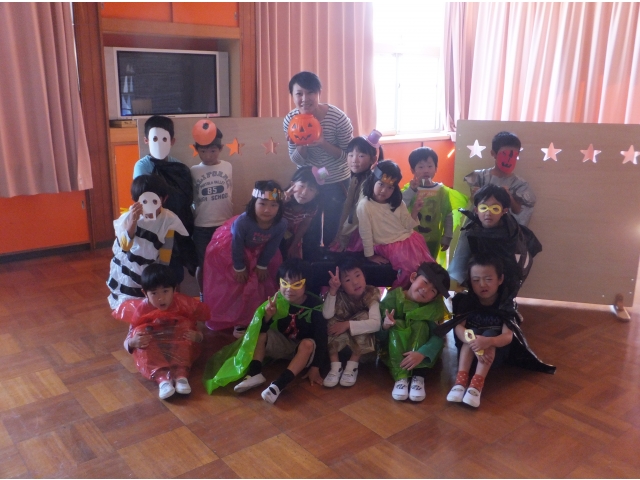 10月28日に子どもたちは自分たちで製作したお面や服で仮装して楽しみました!!