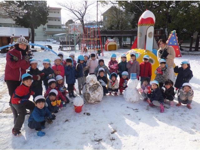 大きな雪だるまや小さな雪だるまをつくったり、