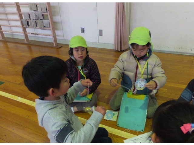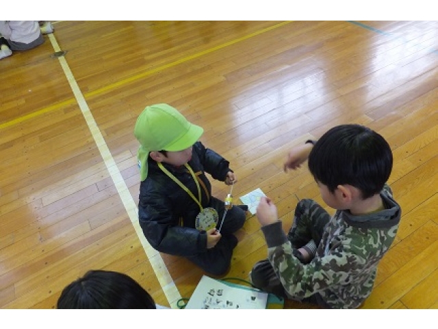 と話す子どもたち。保育園に帰ってからも、もらったびゅんびゅんごまでずっと遊んでいました。