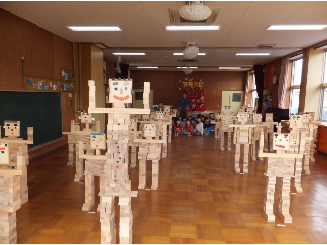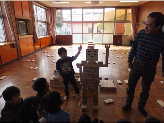 他にも、胴体の積み方や、腕の曲げ方、顔の作り方などを教えてもらい、子どもたちは興味津々で話に耳を傾けていました(*^^)