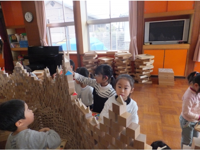一度崩れてしまいましたが、「大丈夫だよ!」「もう一回作ろう!」とみんなで作りなおしました(#^.^#)