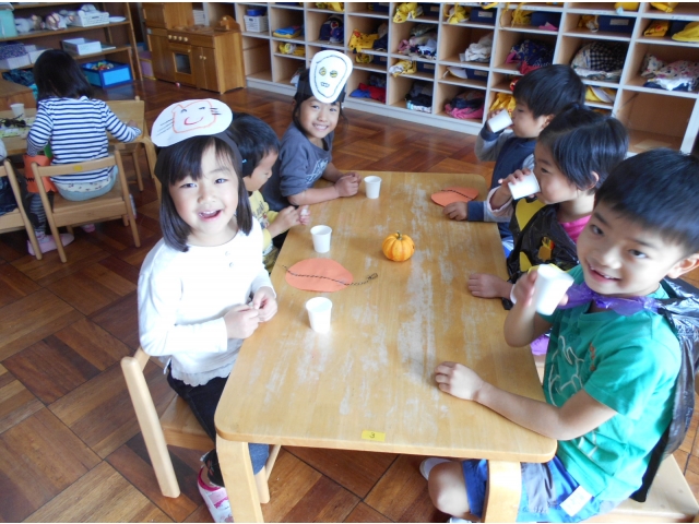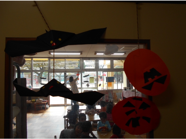 今日はハロウィン。大きなかぼちゃも飾りました。