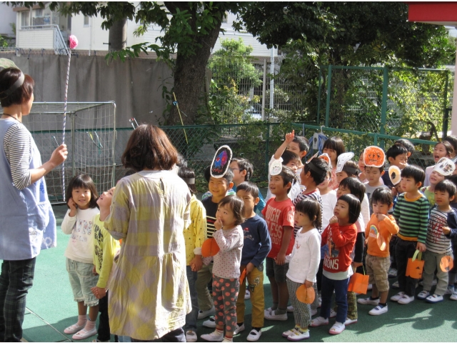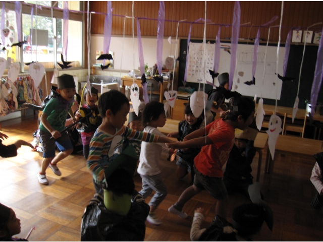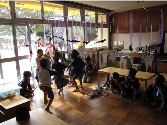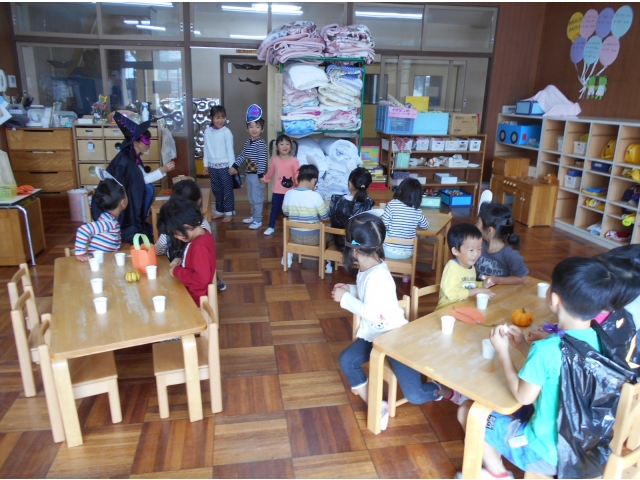 変装したぞう組さんが、ぞう組の部屋でみんなを驚かせます。