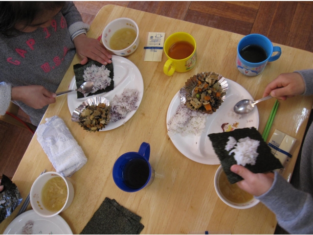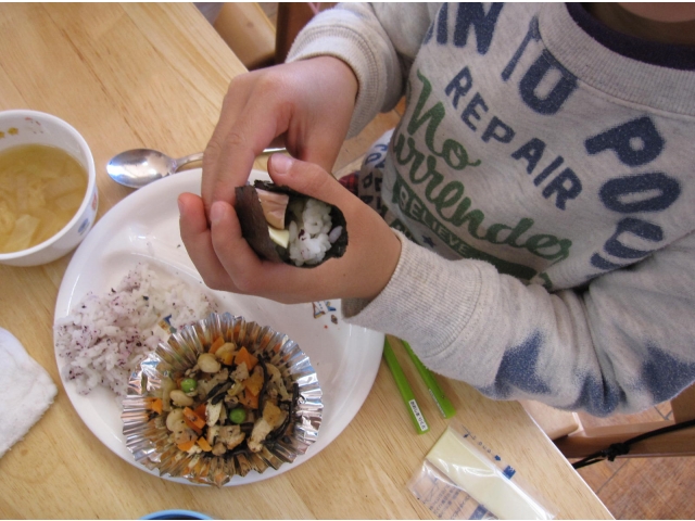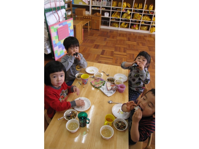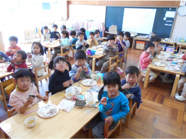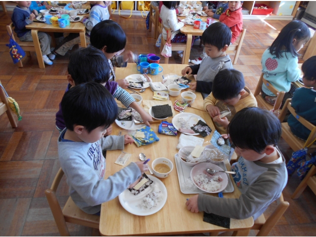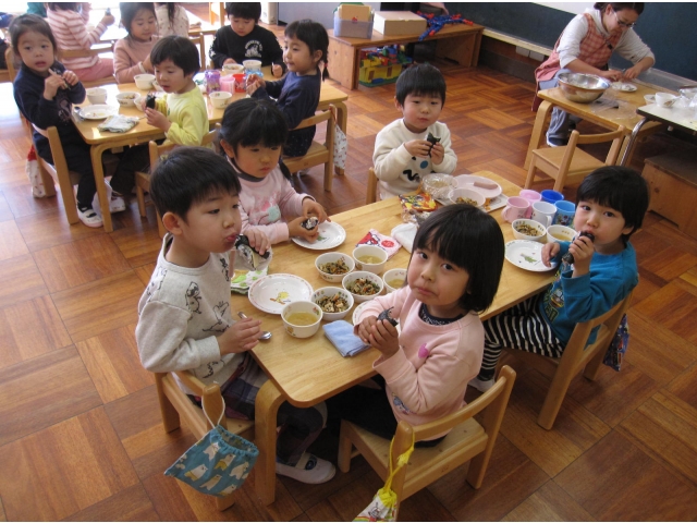 「おもちゃがたくさんもらえますように…」「探検家になれますように」「長生きできますように…」と一人ひとり願いを込めて食べました。