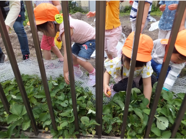 「いちご、あった~!」「赤いよ!」「どこ?どこ?」と