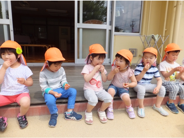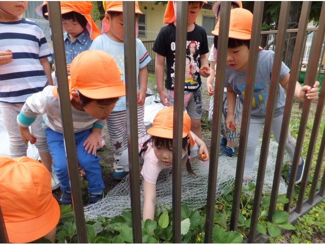 その前に食べた年長児は「あんまりおいしくなかった…」と言っていたので、いちごにも当たり外れがあるみたいです(笑)