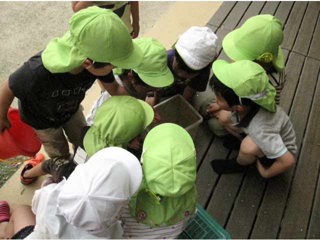 午後の園庭遊び中、年長児が「せんせー、ダンゴムシ、たまご持ってる!」と大騒ぎ。