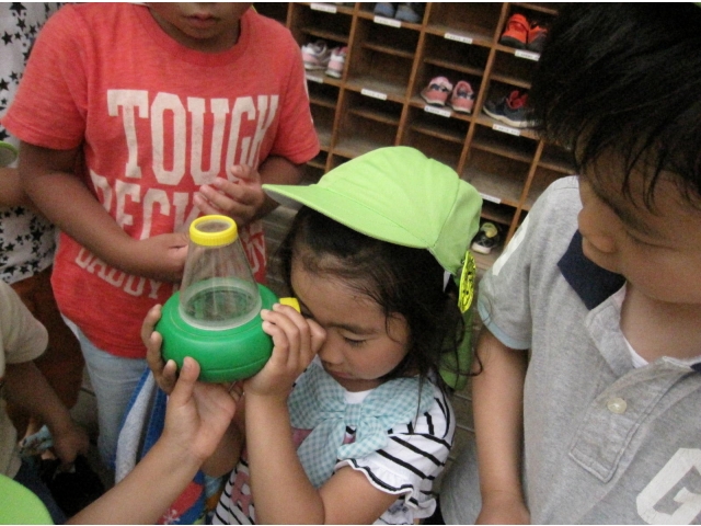 その後は、虫を拡大して見ることができる観察ケースに入れてみました。
