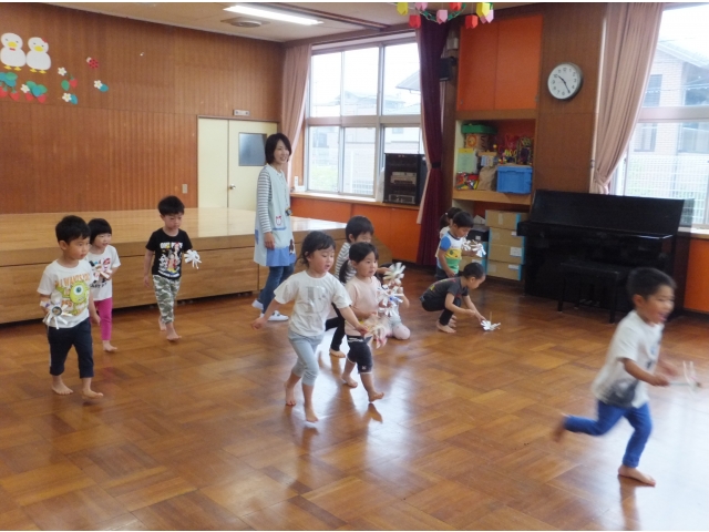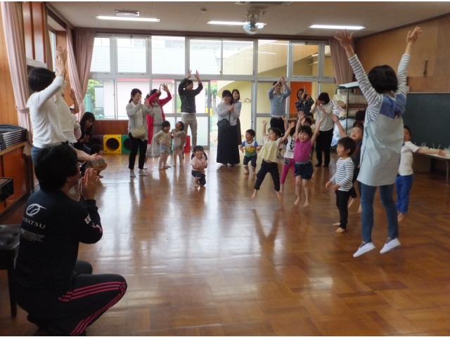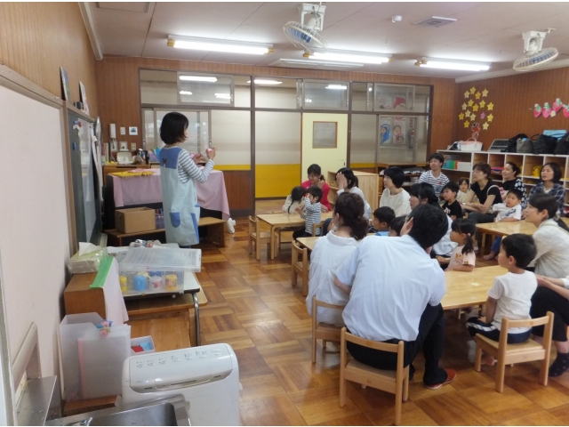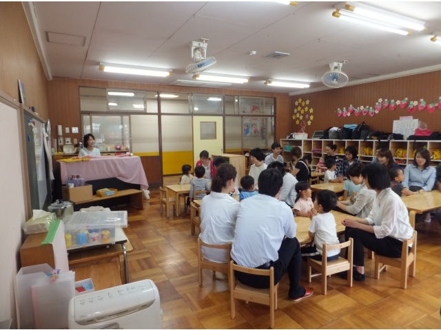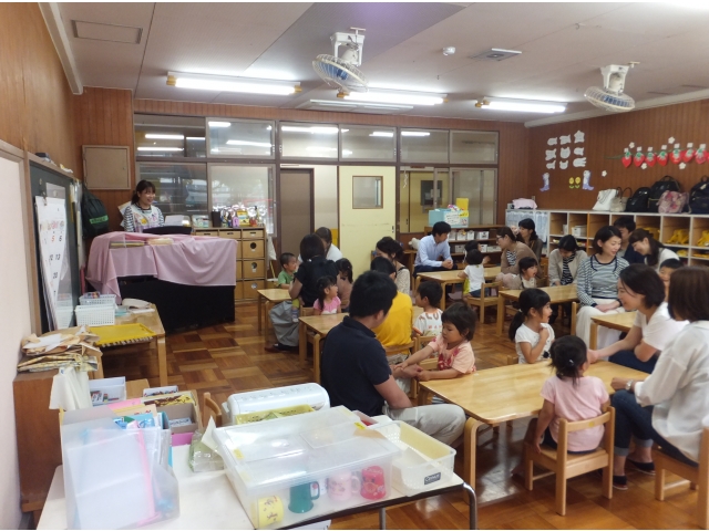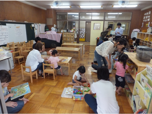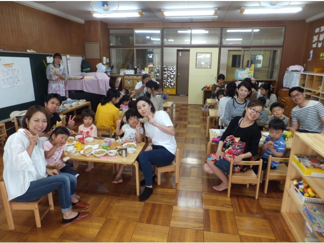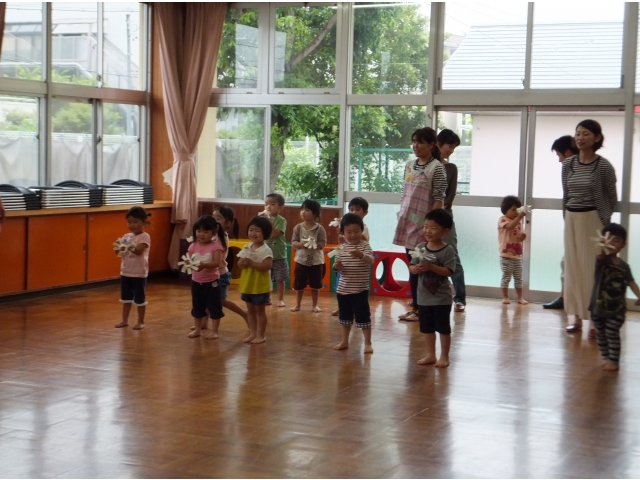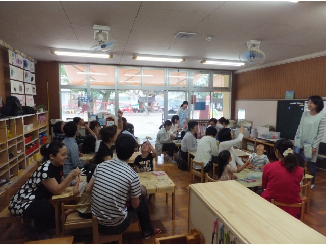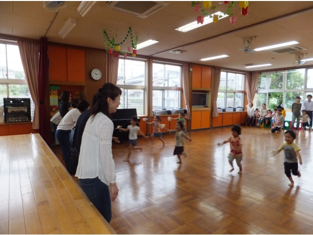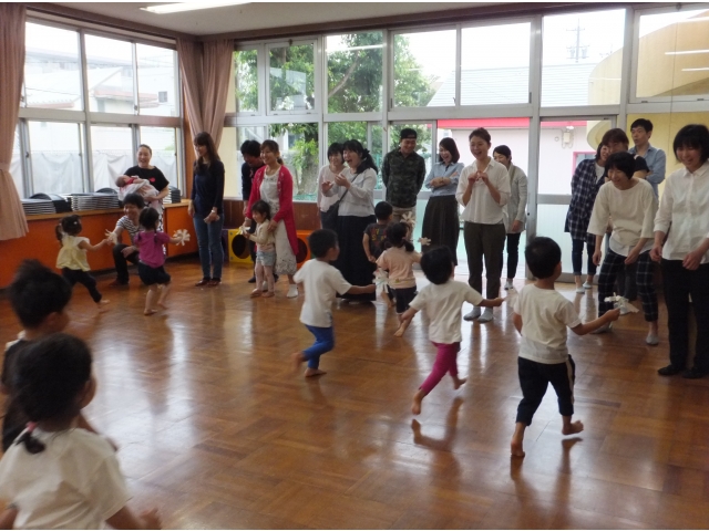 あいにくの雨でしたが、大好きなお父さん、お母さんと一緒に風車を作ったり、体操したり、部屋で好きな遊びをしたり、給食を食べたりし楽しいひとときを過ごしました。
