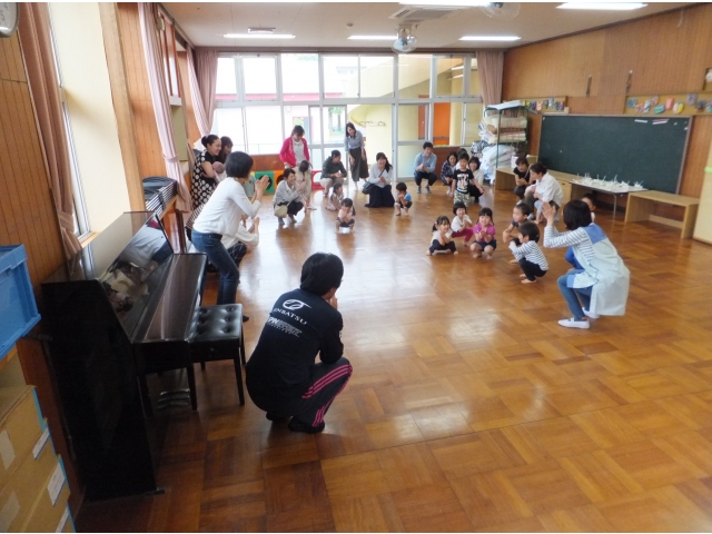 子どもたちは大好きなお父さん、お母さんと一緒に過ごすことができ、うれしさ、楽しさが倍増♡また、お父さん、お母さんと一緒で、普段保育園では見られない微笑ましい姿もあり、楽しい親子保育となりました。