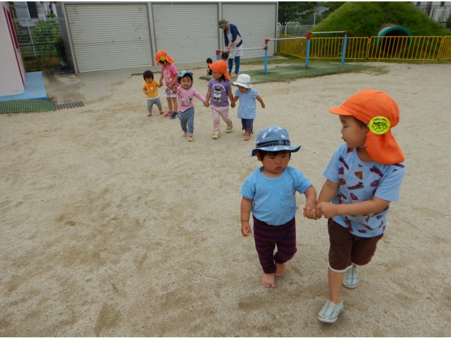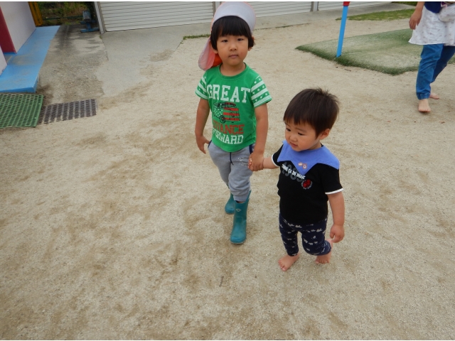 お兄ちゃん、お姉ちゃんと手をつないでお部屋に帰ります。