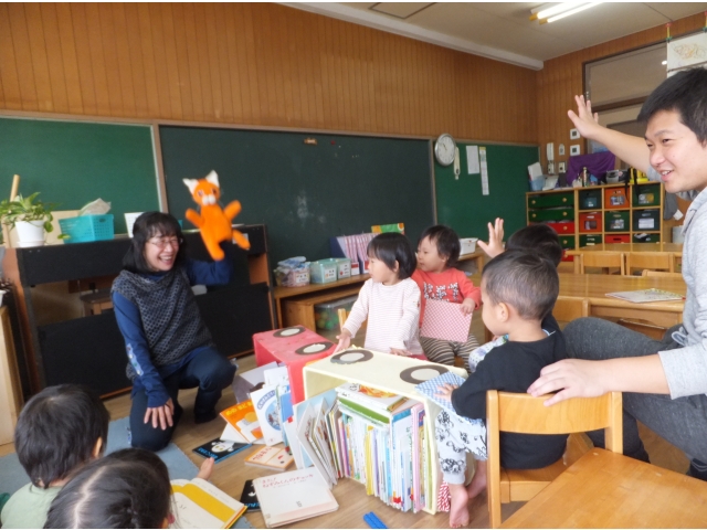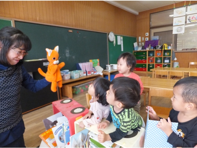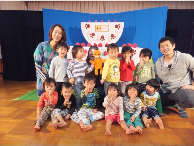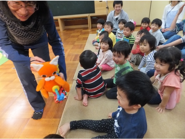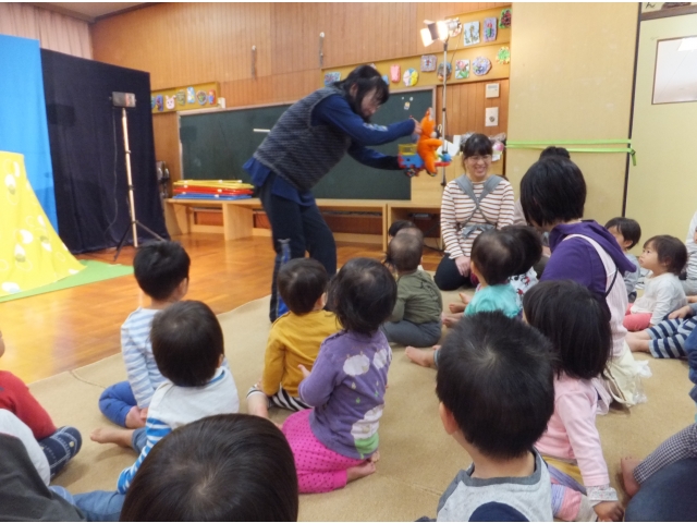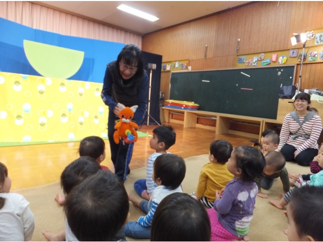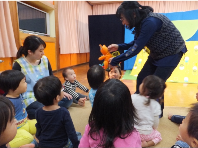 保護者会主催で0~2歳児の子どもたちに人形劇を観せてくださいました。