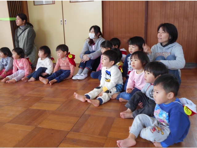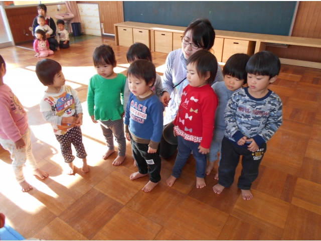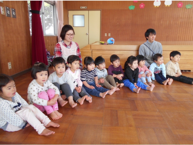 3歳児の始まり。5つのグループに分かれて教えてもらいます。