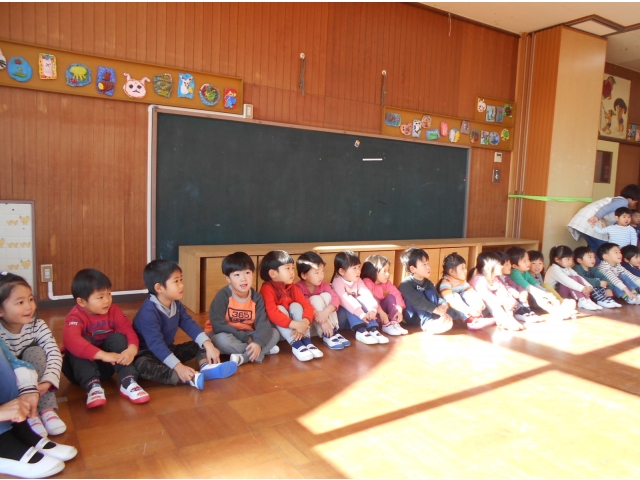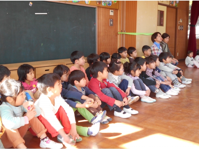 3・4・5歳児各30分ずつ行います。まずは見本を見せていただきました。手に直接乗せる技などに子どもたちはびっくり!でした。
