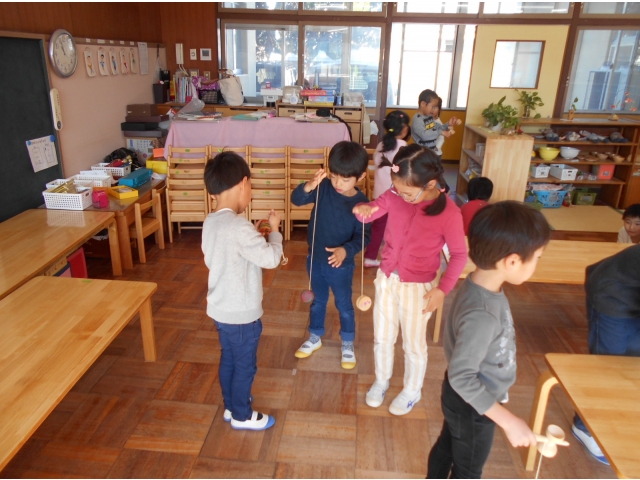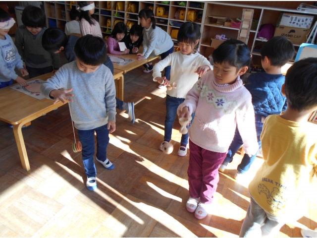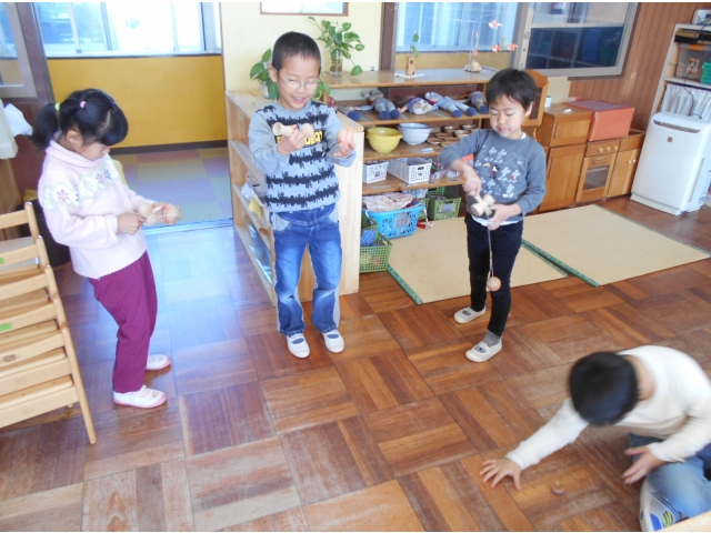 先日、昔から遊び継がれた正月あそびを紹介し、子どもたちと楽しみましました。
