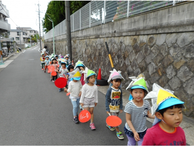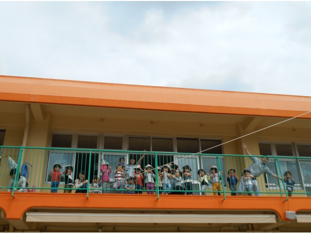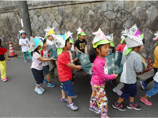 保育園に戻ってきてから、園庭をねり歩いてくれました。