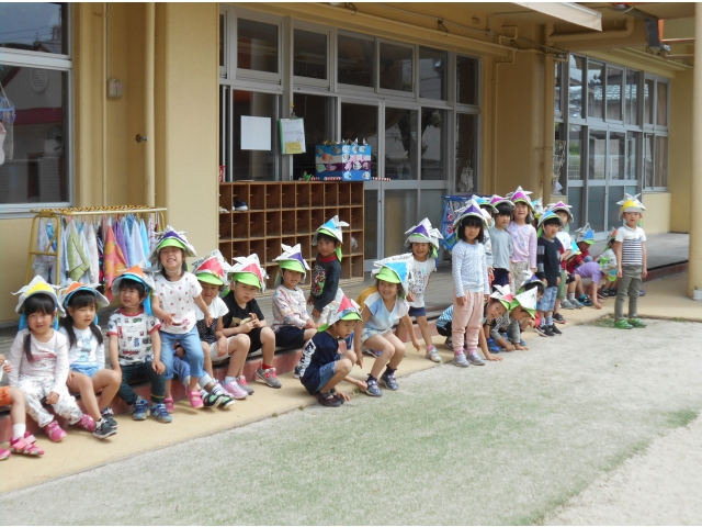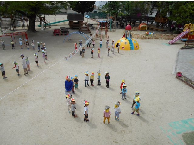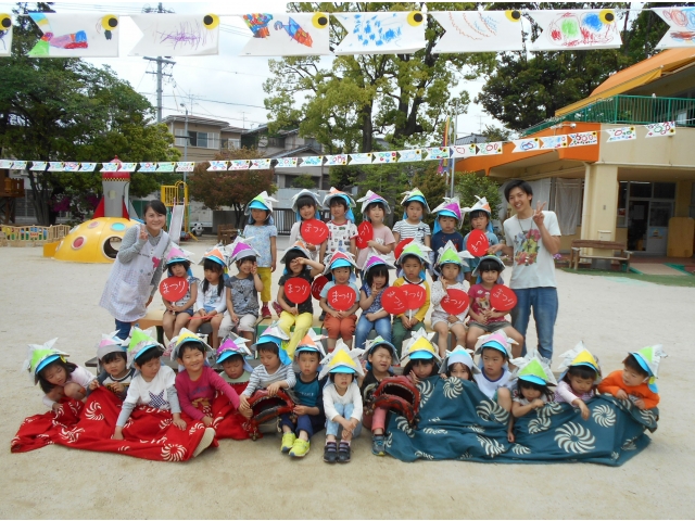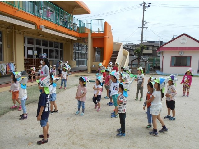 クラスごとに円を作って、こいのぼりのうたを歌ったり、元気よく体操をしたりしました。