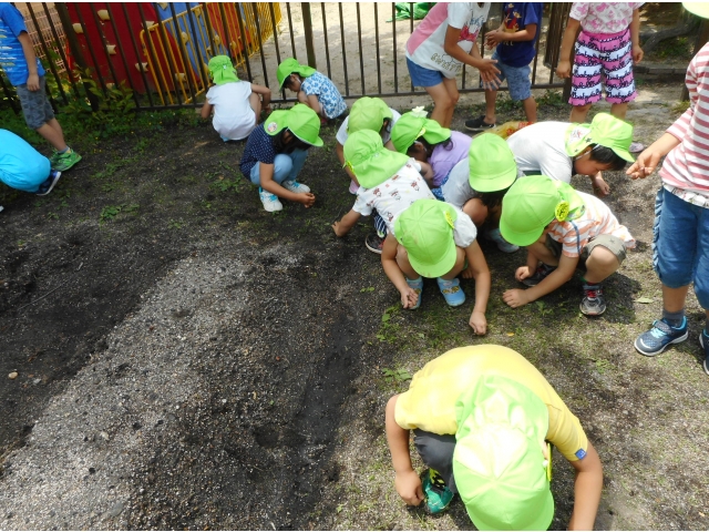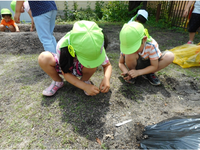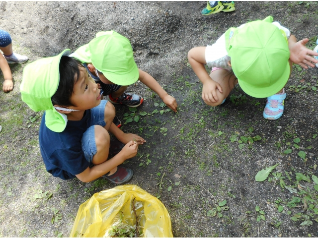畑の野菜が育つよう、今日は5歳児みんなで雑草取りです。