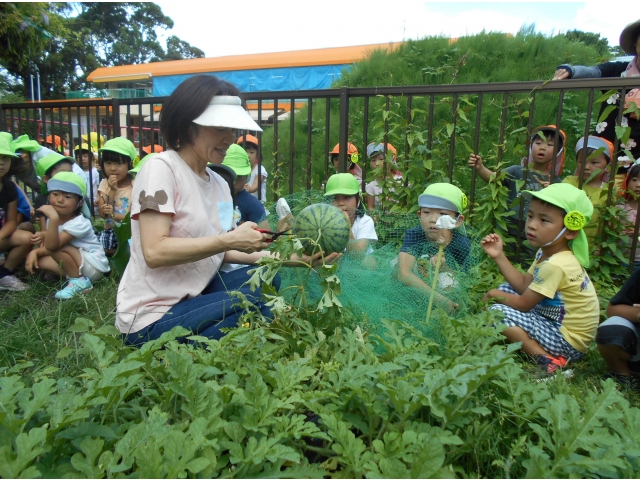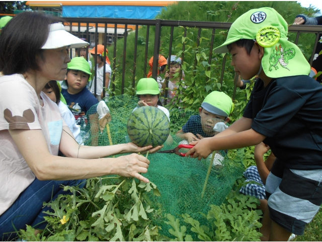 畑で育てたすいか、とうもろこしが大きくなってきたので、みんなで収穫してみることになりました。