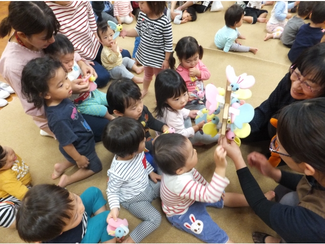 次は1歳児のうさぎ組とりす組です。