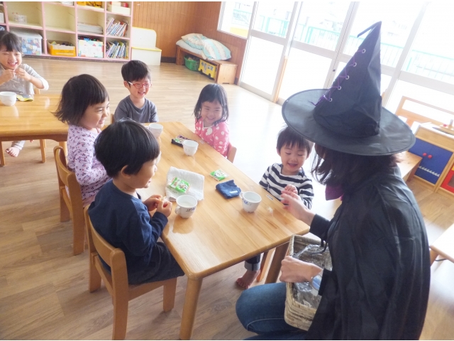 ハロウィンパーティを楽しんでくれたようで、お迎えの時に「おうちでもパーティやりたい!」とリクエストしているお友だちもいました。楽しい一日でした。