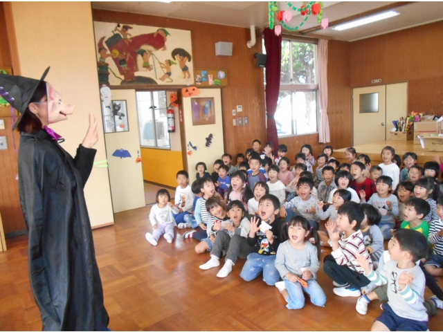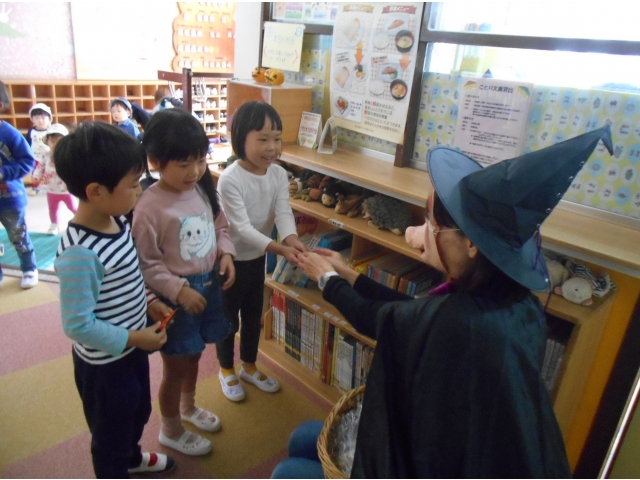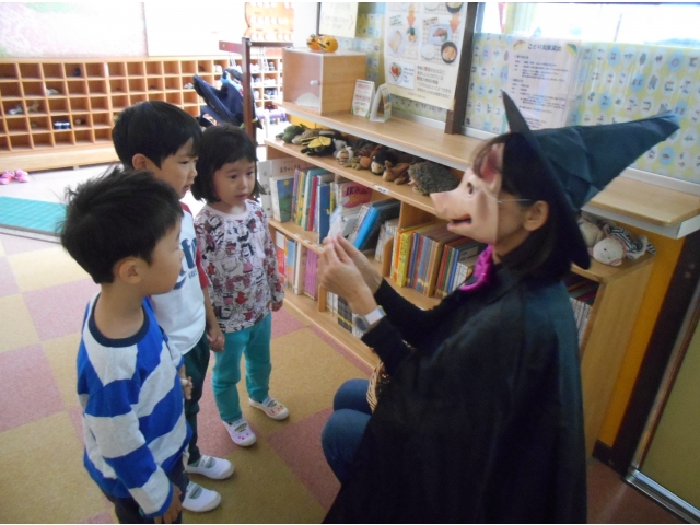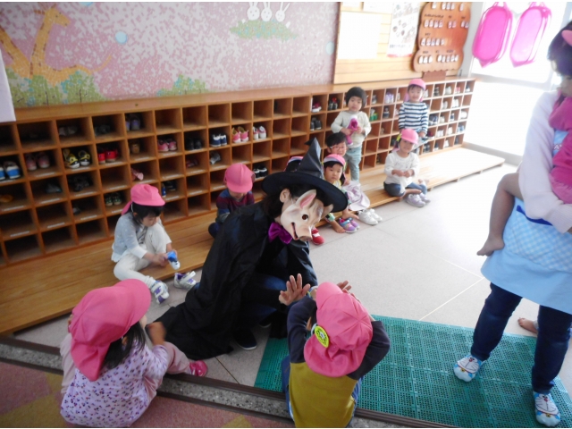 びっくりした子、怖がっていた子、勇気を出してタッチした子、そしてなぜか「いのしし魔女だー!」と騒いでいる子、いろいろでした。