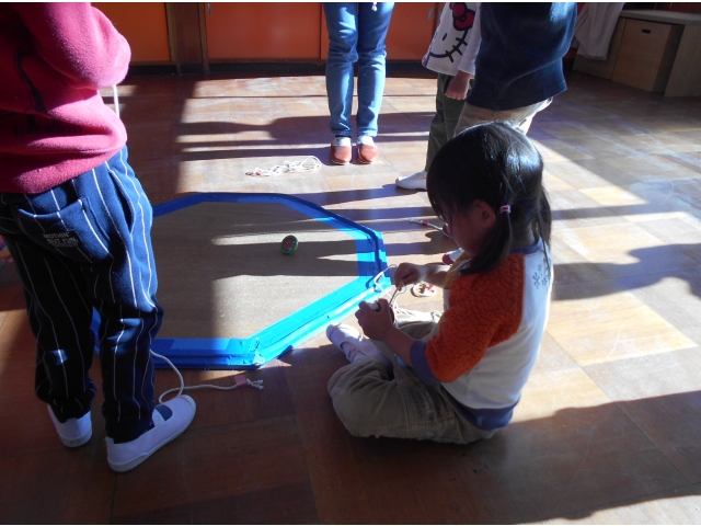てるもん、すうすう、たっくん、のりちゃん、ゆきみん、教えてくれてありがとうございました。こま回しの楽しさを感じることができました。練習してもっと回せるようになりたいな。