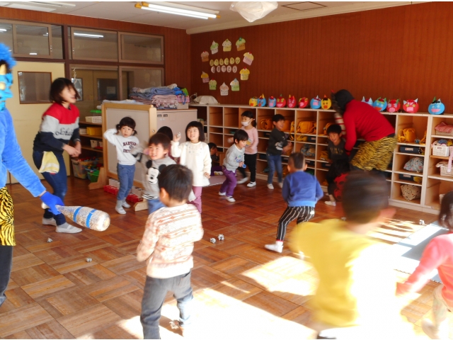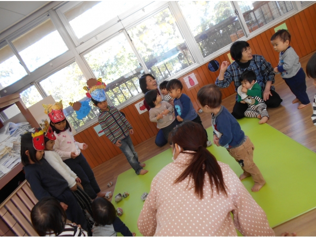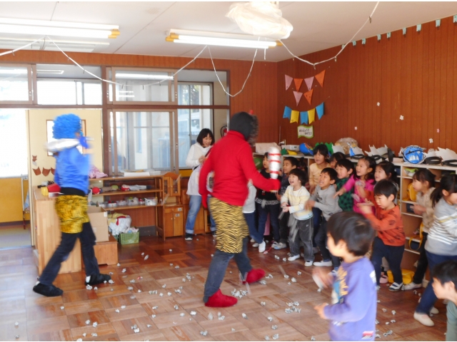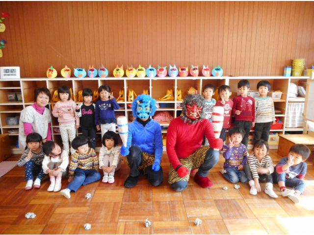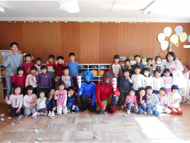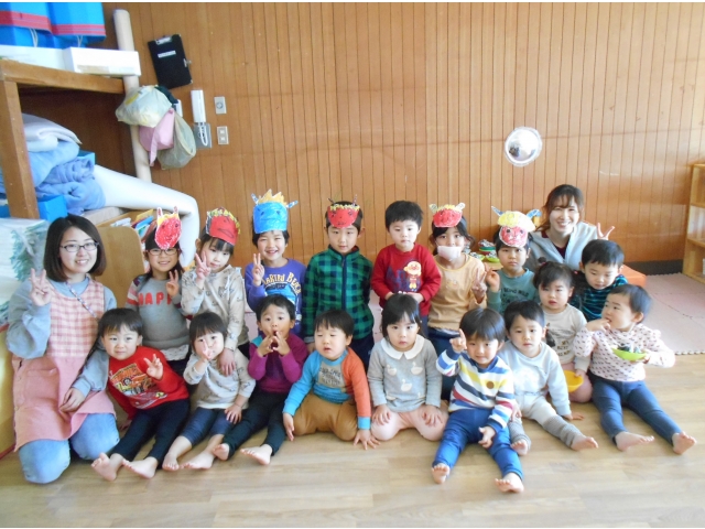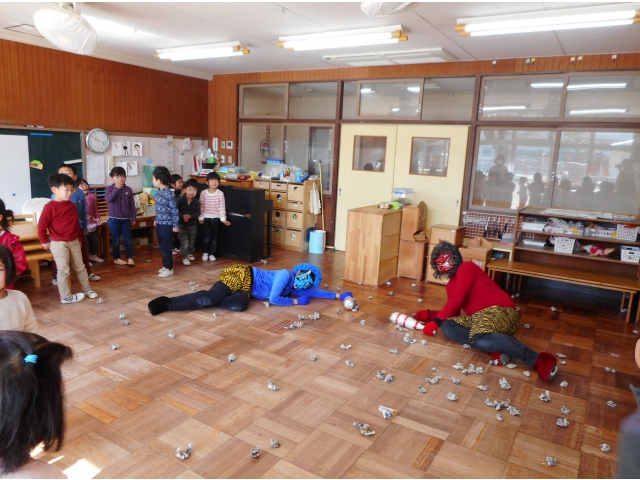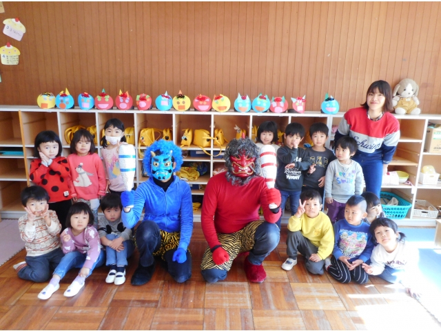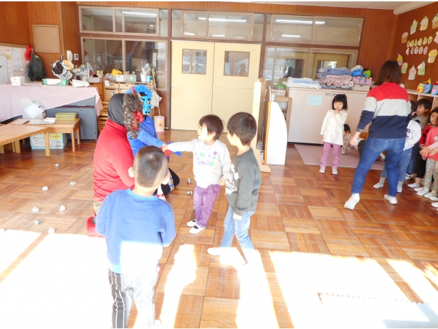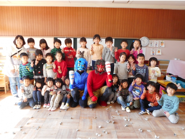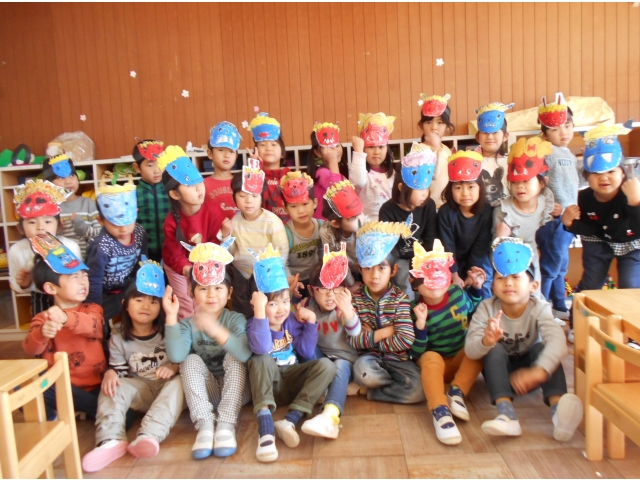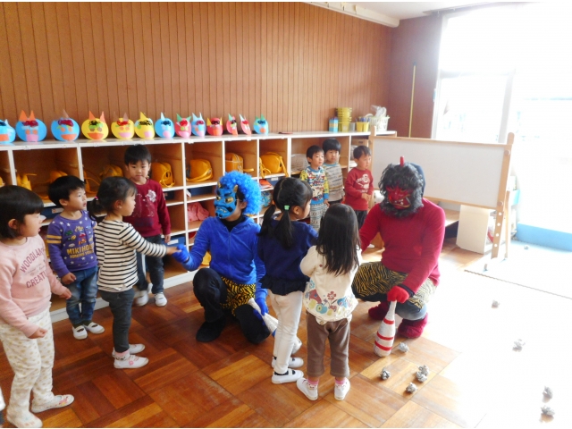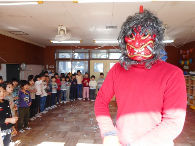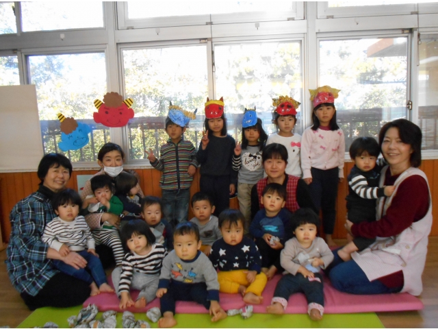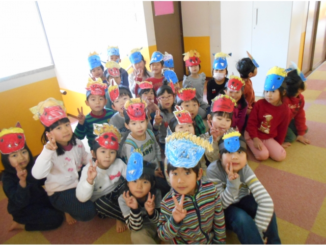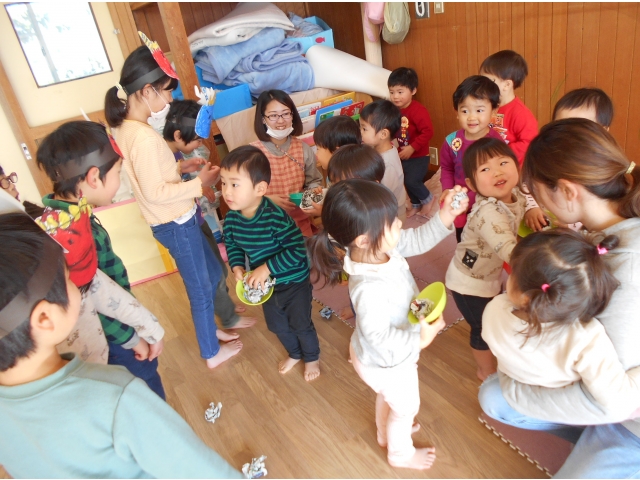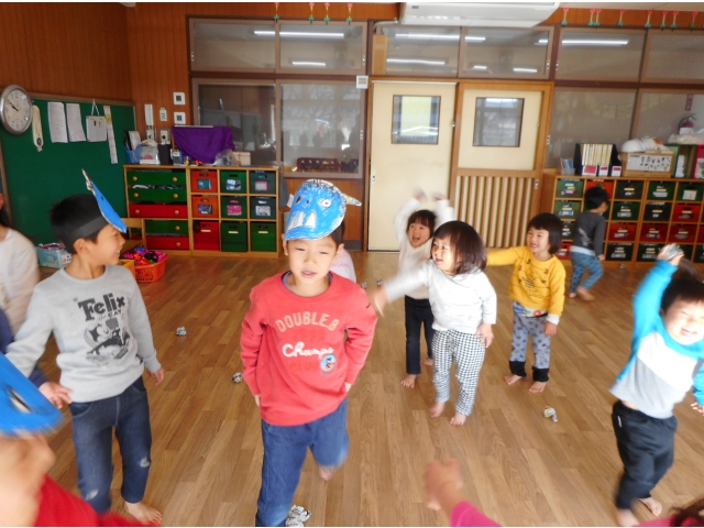 もうすぐ節分! 少し早いのですが園で豆まきをしました。