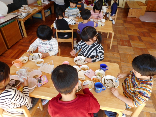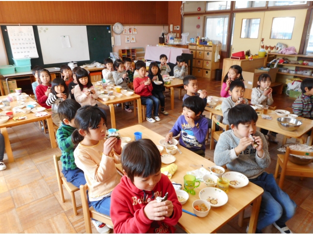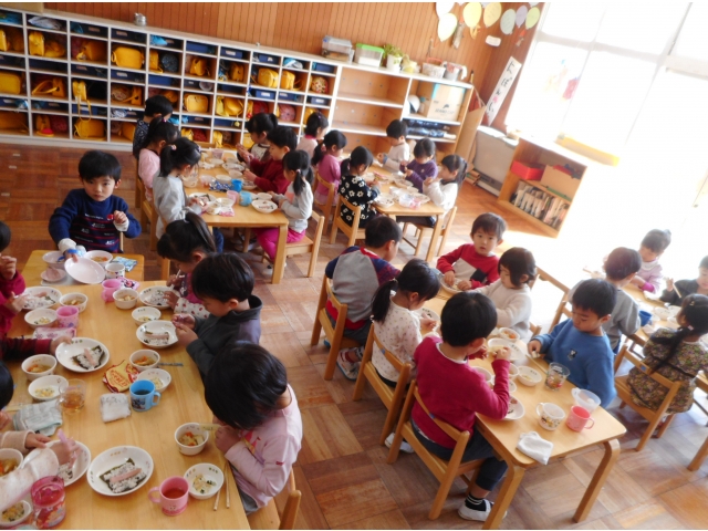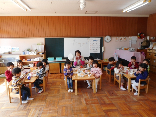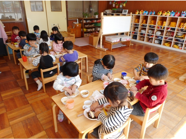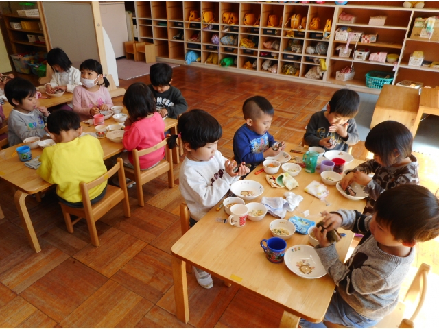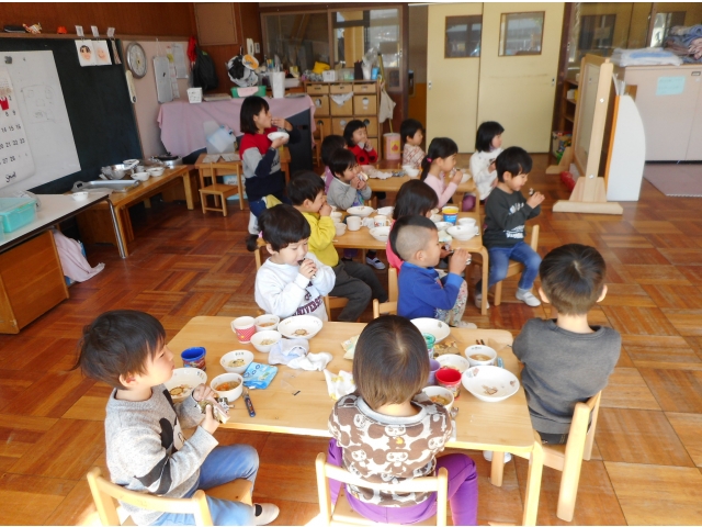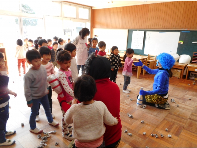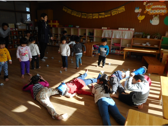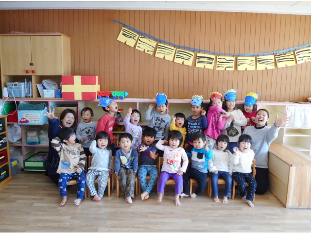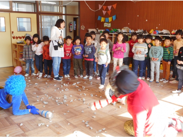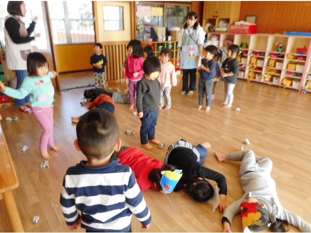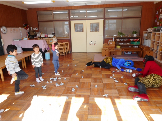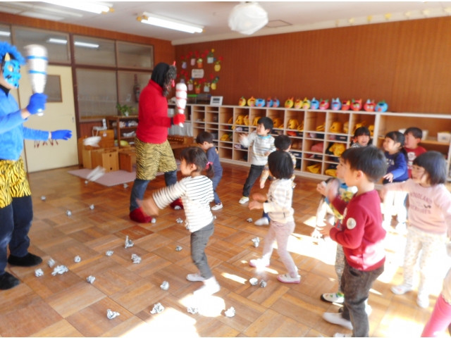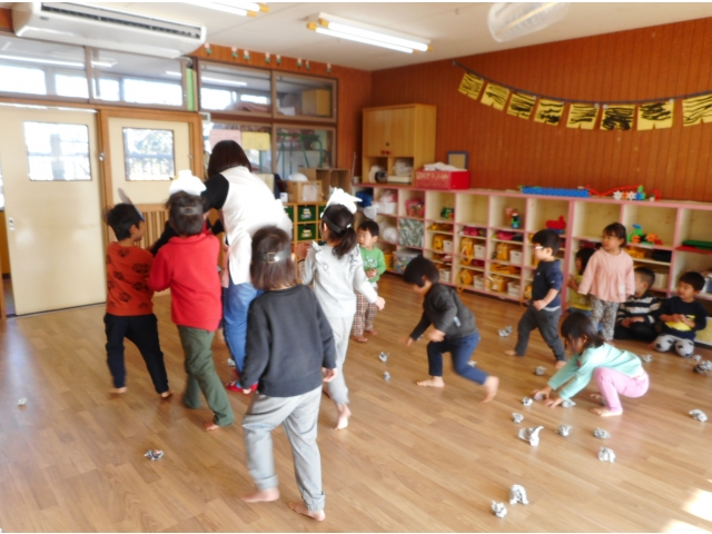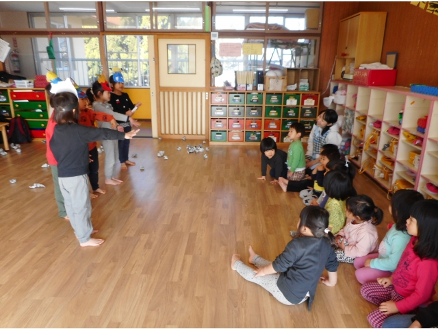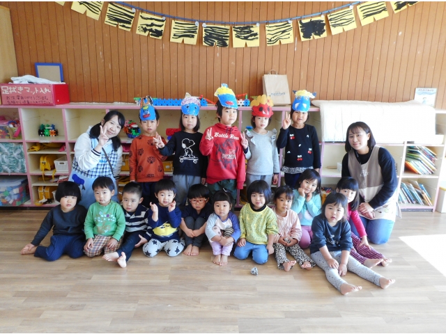もうすぐ節分! 少し早いのですが園で豆まきをしました。