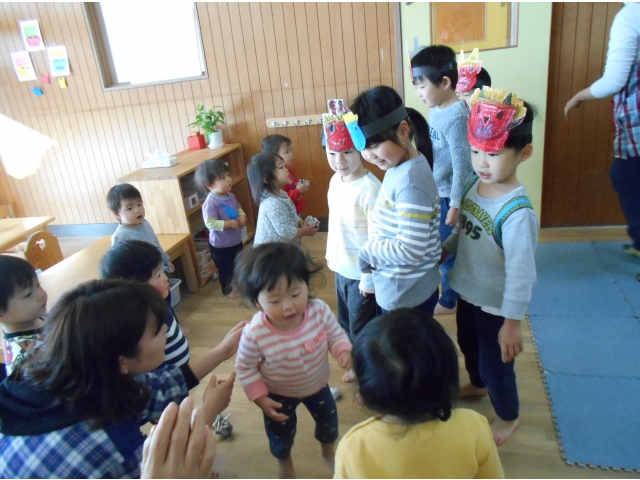 乳児クラスは年長さんがオニになって各部屋を回りました。