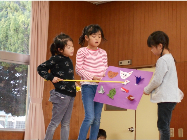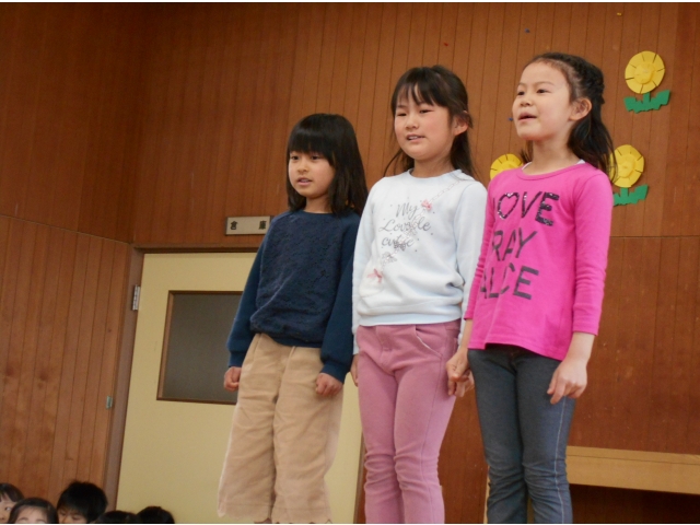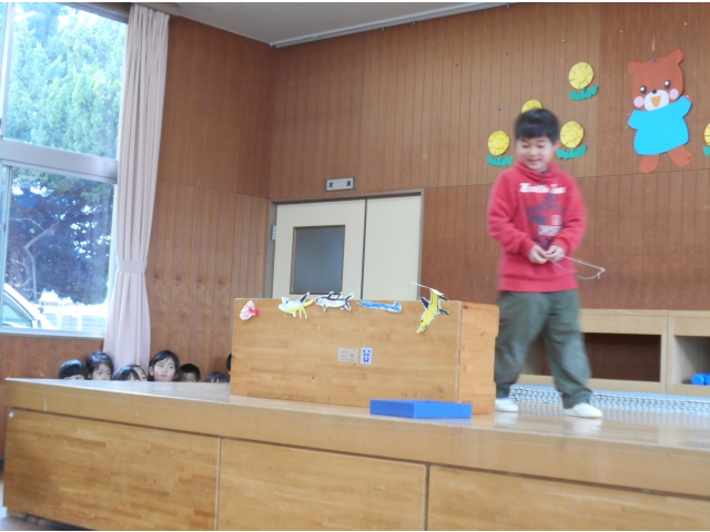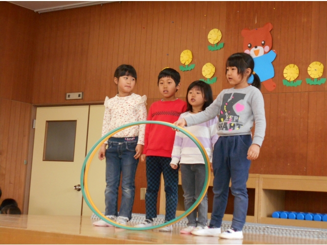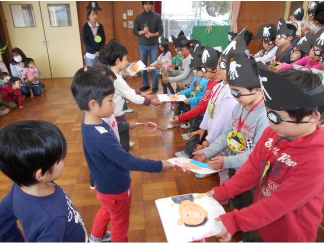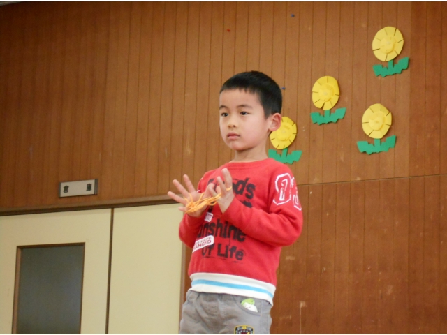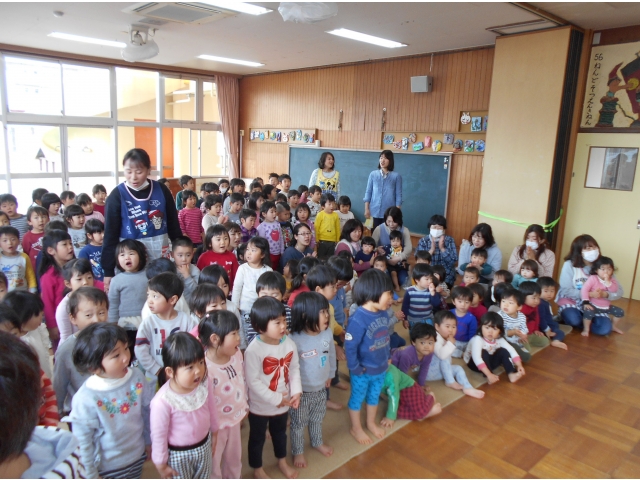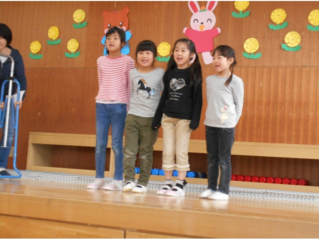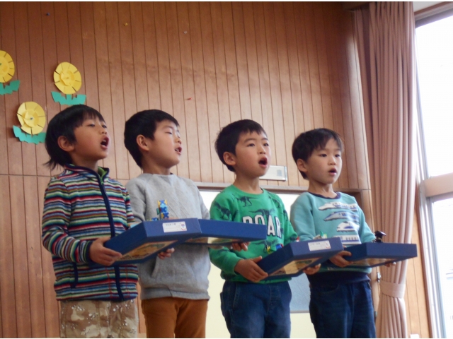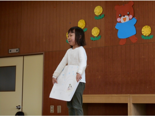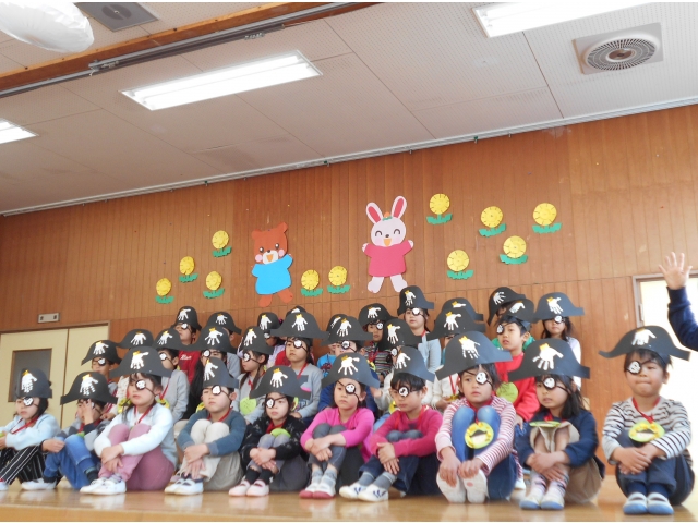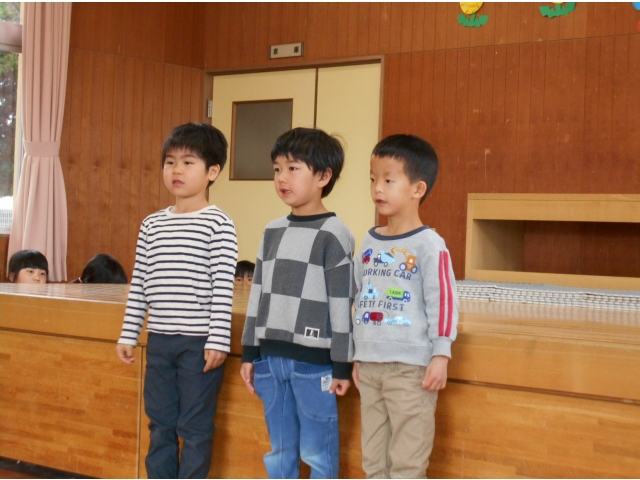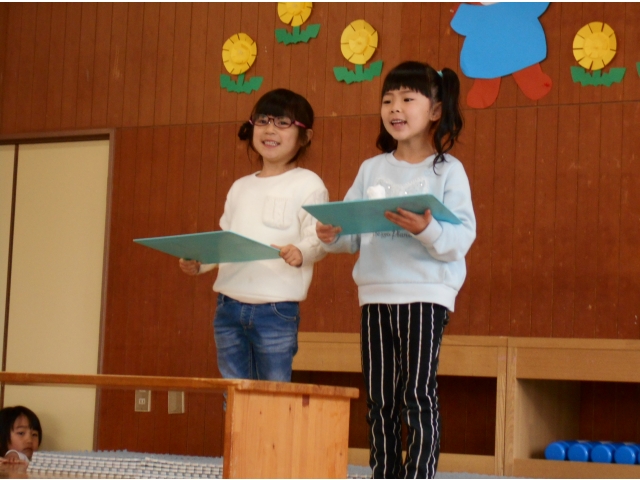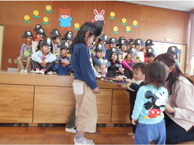今日は、全園児、全職員で年長さんをお祝いする会を開きました。