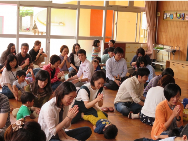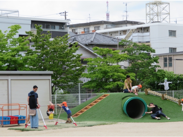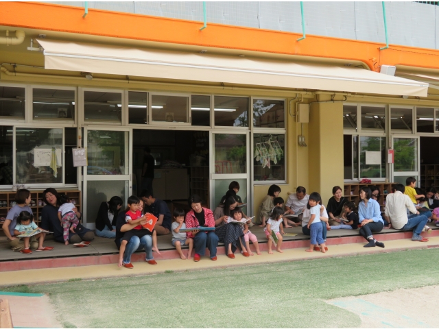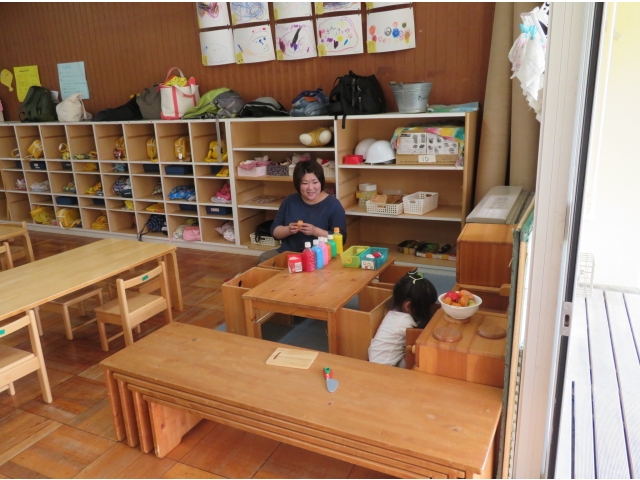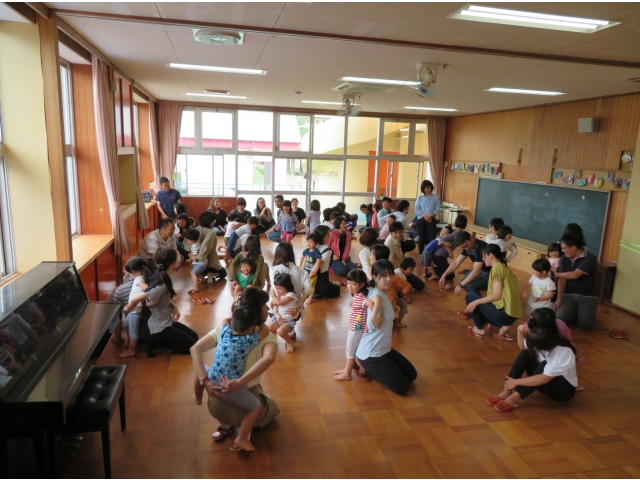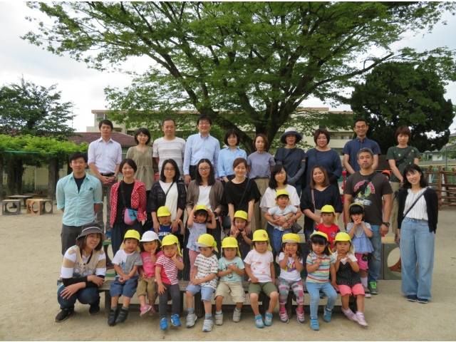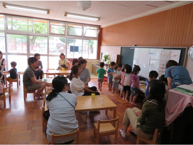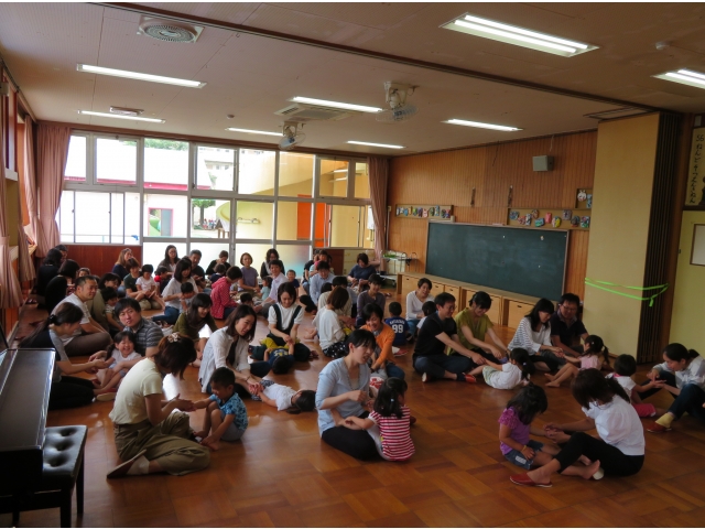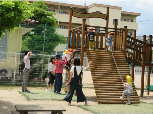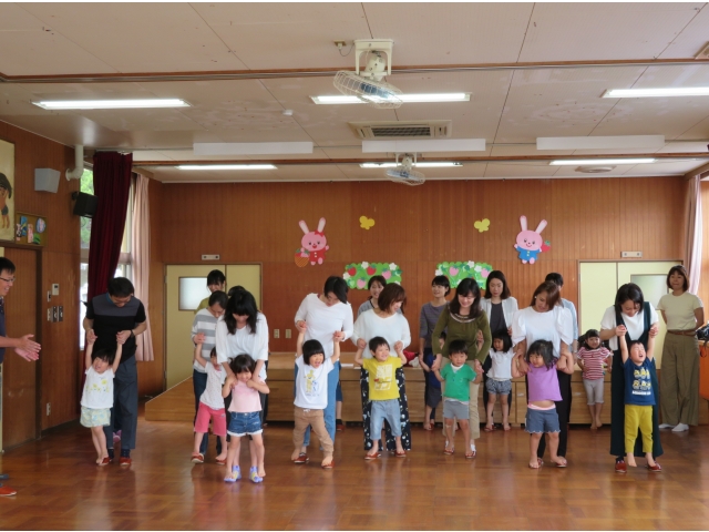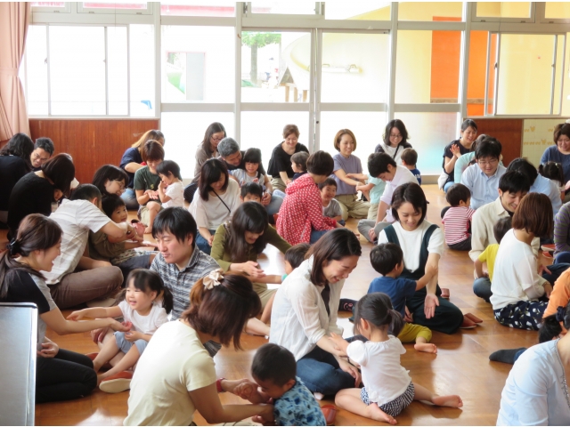 朝からお父さん、お母さんを好きな遊具へ誘い一緒に遊んだり、ふれあい遊びをしたり、給食を食べたりし、親子で楽しい時間を過ごしました。