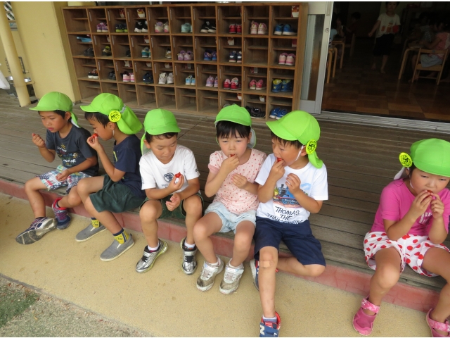 「おいしい~」「あま~い」と言っていましたが、中には苦手な子もいます。みんながおいしそうに食べているので、挑戦してみたけれど、やっぱりお口に合わなくて断念する子もいました。