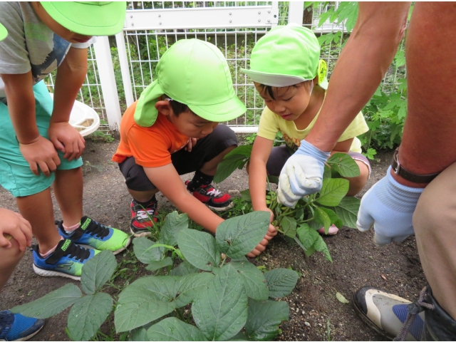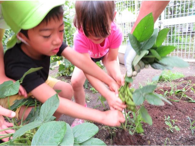 次は枝豆。お友だちと力を合わせて抜いていきます。