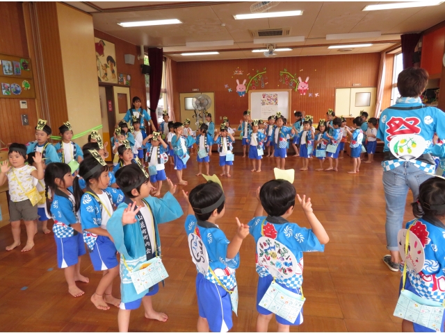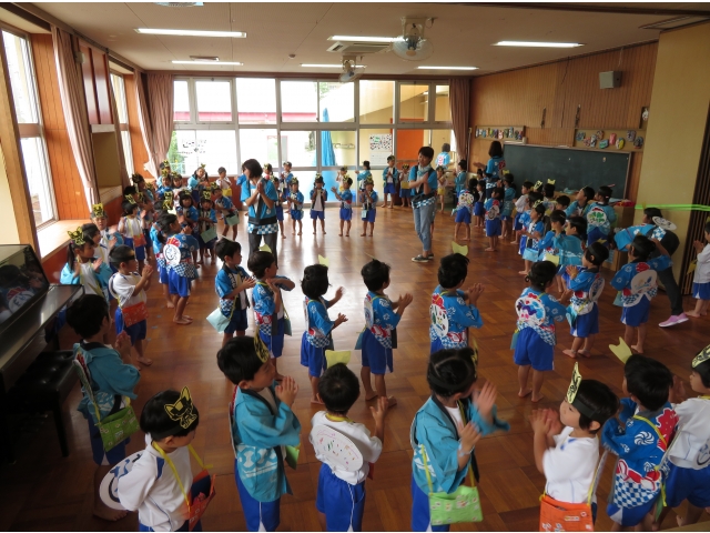 みんなで盆踊りを踊ました。今年は東京五輪音頭2020です。