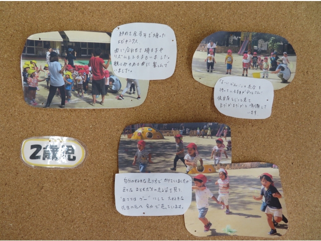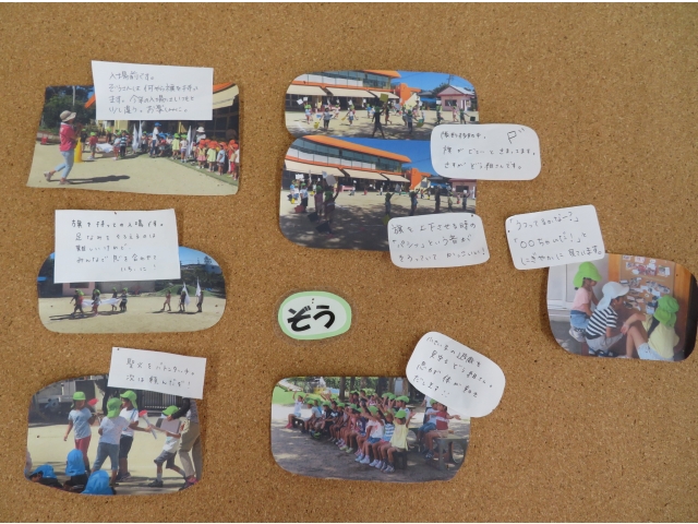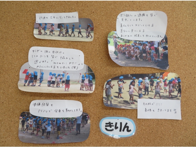 運動会に向けて、9月17日~20日に子どもたちが取り組んできた過程の写真にコメントをつけて掲示したものです。