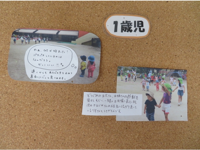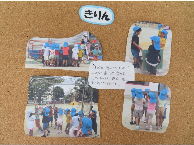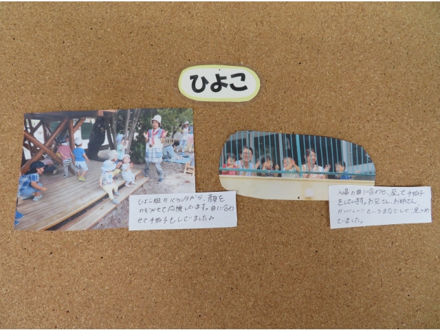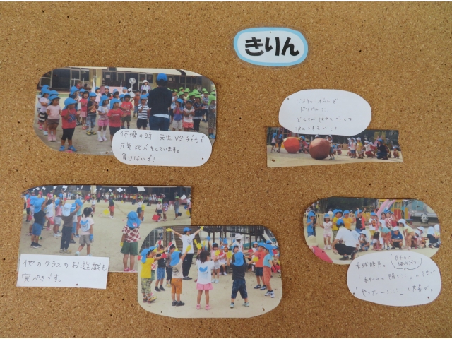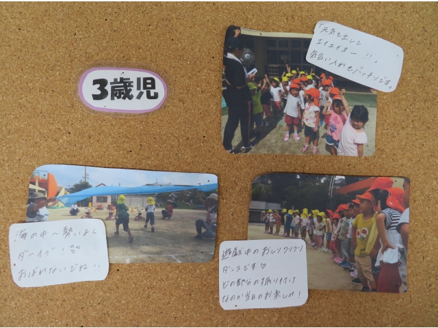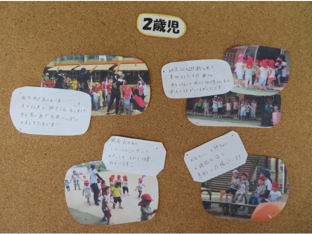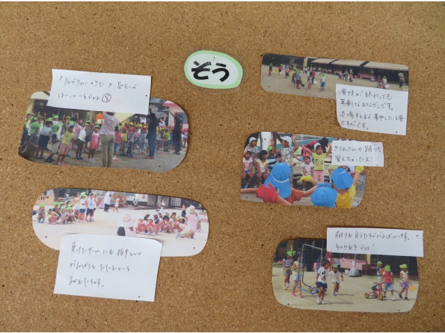 運動会に向けて、子どもたちが10月3~4日の間に取り組んできた過程の写真にコメントを付けて掲示したものです。