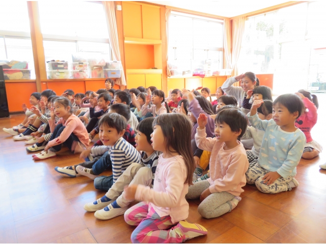 楽しく紙芝居を見せていただき、大喜びの子どもたちでした。