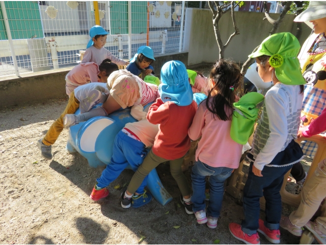4・5歳児みんなで行き、がんばってお芋を掘りました。大きなお芋に大喜びでした!